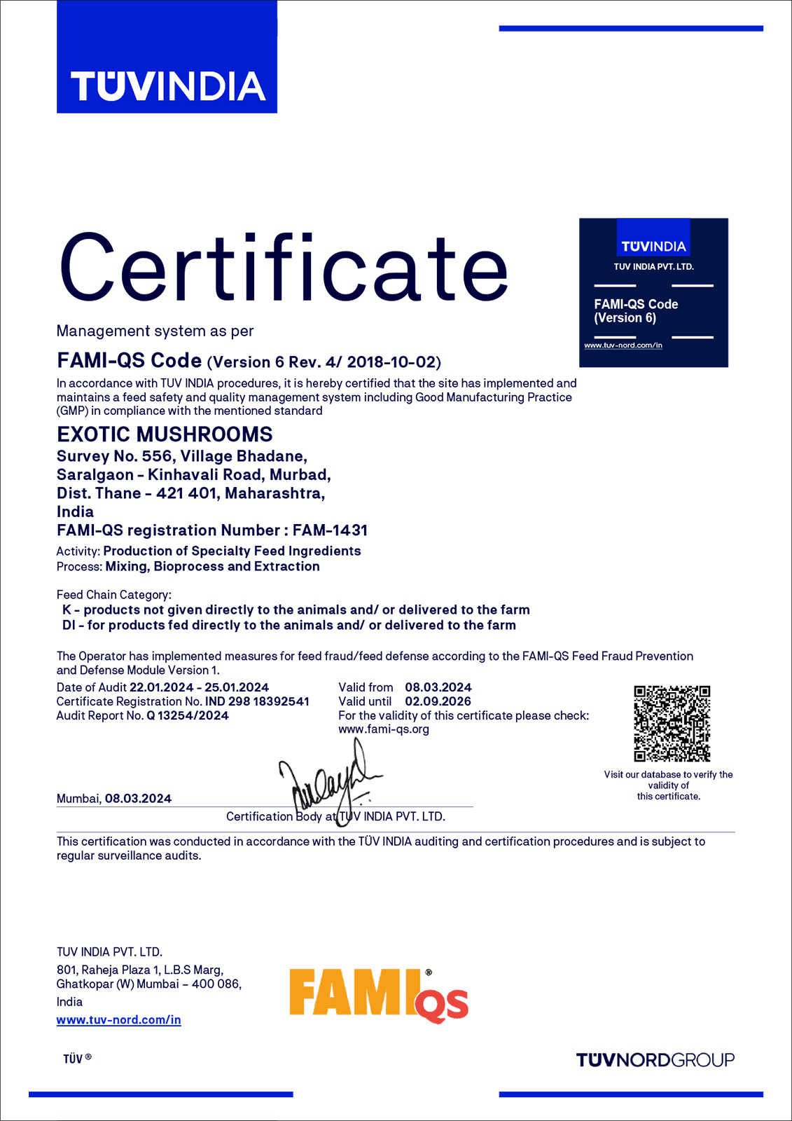 Third-Party Manufacturing & Technical Support: In addition to manufacturing its own brands, Exotic Mushrooms also operates as a third-party manufacturer for several reputed companies, offering technical assistance for product management alongside production.